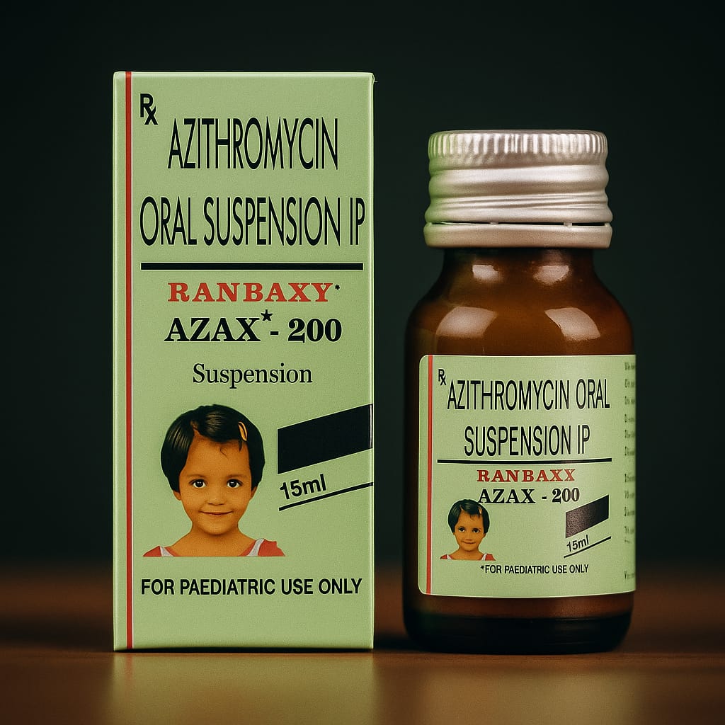 Azax 200 Suspension contains Azithromycin, a macrolide antibiotic used to treat a wide range of bacterial infections. It is commonly prescribed for respiratory tract infections like bronchitis, pneumonia, pharyngitis, and sinusitis, as well as ear infections, skin and soft tissue infections, and certain sexually transmitted infections. In children, it is especially useful for tonsillitis, otitis media (middle ear infection), and bacterial throat infections.