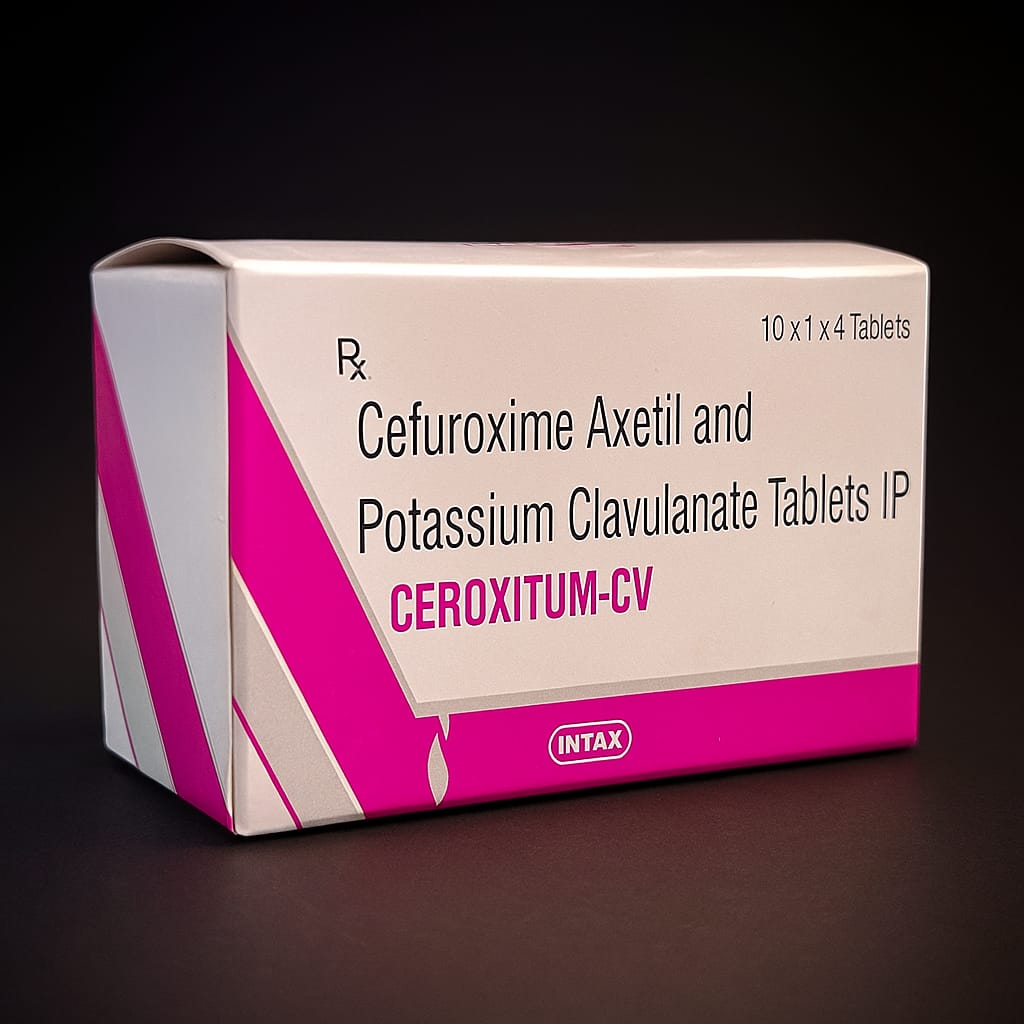 Ceroxitum CV Tablet is a combination antibiotic medication that typically contains Cefuroxime (a cephalosporin antibiotic) and Clavulanic Acid (a beta-lactamase inhibitor). It is used to treat bacterial infections by stopping the growth of bacteria and preventing them from becoming resistant to the antibiotic.
