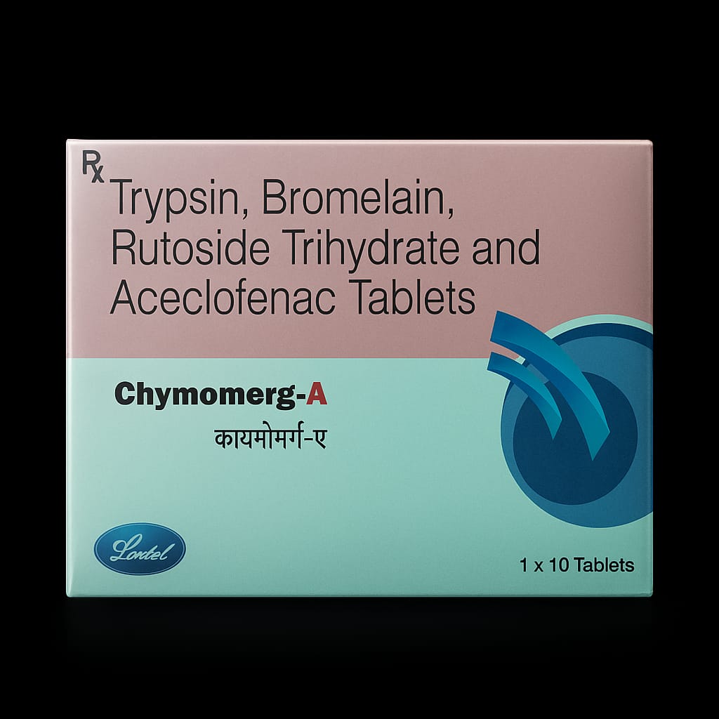Chymomerg-A Tablet is a combination medicine that contains Trypsin-Chymotrypsin (a proteolytic enzyme) and Aceclofenac (a non-steroidal anti-inflammatory drug β NSAID). This combination is mainly used to reduce pain, inflammation, and swelling associated with various conditions, particularly after injuries or surgeries.
