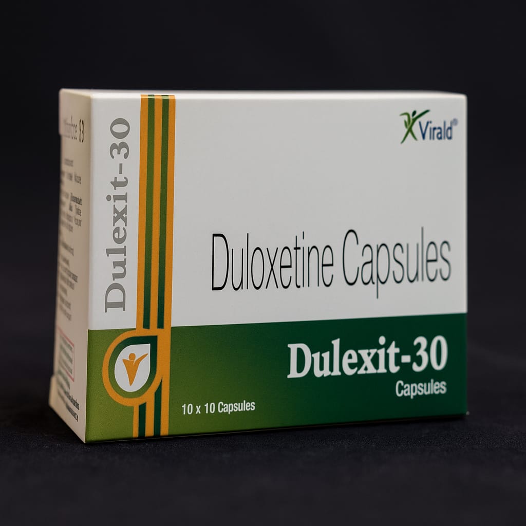 Dulexit 30 Capsule contains Duloxetine 30 mg, a serotonin-norepinephrine reuptake inhibitor (SNRI) used to manage depression, anxiety, and certain types of nerve pain. It works by restoring the balance of natural chemicals (serotonin and norepinephrine) in the brain, which improves mood and reduces pain perception.
