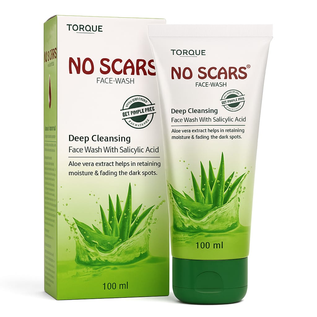 No Scars Face Wash is a medicated skincare product formulated mainly for oily and acne-prone skin. It helps in deep cleansing by removing excess oil, dirt, and impurities from the pores, thereby preventing pimples and breakouts. The face wash contains ingredients like salicylic acid, which work as an exfoliant to clear dead skin cells and unclog pores. Regular use helps in reducing blackheads, whiteheads, and acne scars over time. It also promotes a fresher and brighter skin tone by controlling excess sebum production. Dermatologists often recommend it as part of acne management to maintain clear and healthy skin.