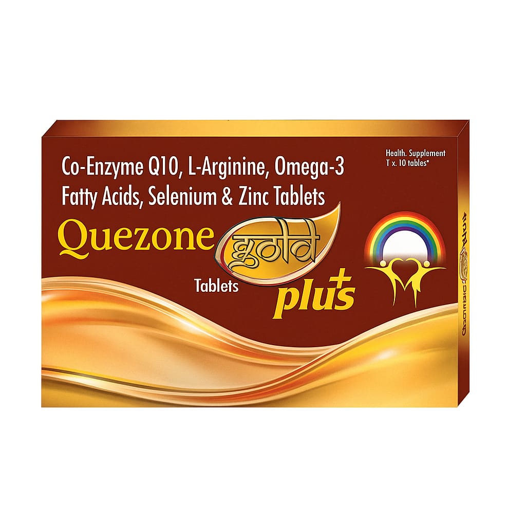 Quezone Gold Plus Tablet is a nutritional supplement designed to support overall health, energy, and immunity. It contains key ingredients such as Coenzyme Q10, L-Arginine, Omega-3 fatty acids, Selenium, and Zinc.