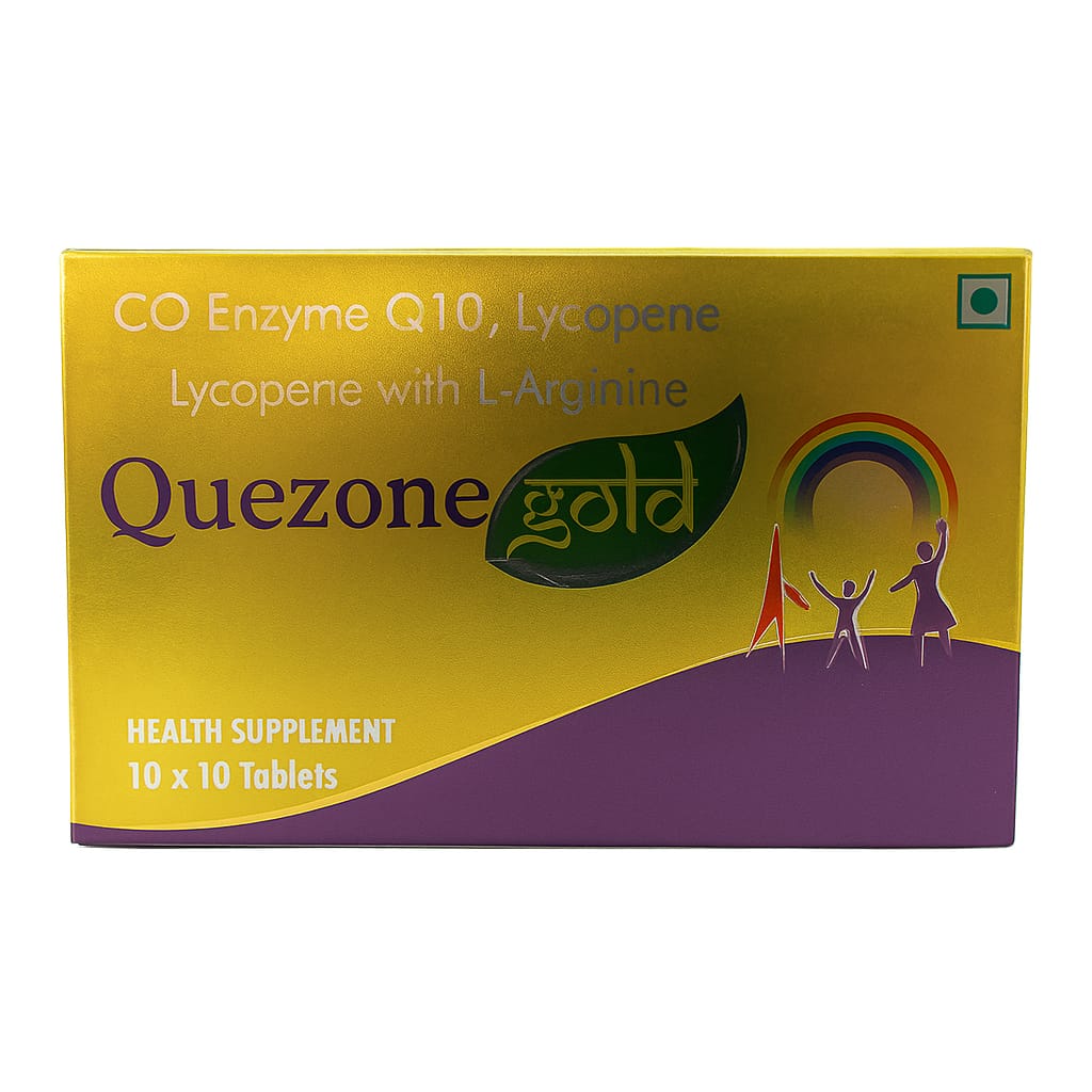 Quezone Gold Tablet is a nutritional supplement that contains a combination of vitamins, minerals, and antioxidants essential for overall health. It is commonly prescribed to manage conditions caused by nutritional deficiencies. The tablet helps improve energy levels, reduces weakness and fatigue, and supports proper functioning of the nervous system. It is beneficial in enhancing immunity, protecting the body from oxidative stress, and promoting healthy skin, hair, and nails. Doctors may also recommend it for patients with chronic illness, during recovery from surgery, or for people with poor dietary intake. The supplement also aids in improving blood circulation, supports cardiovascular health, and helps maintain bone strength.