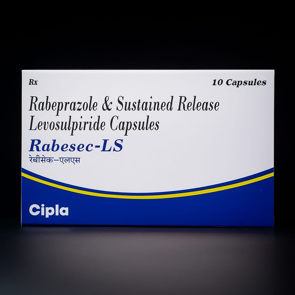 Rabesec LS is a combination medicine manufactured by Cipla, containing Rabeprazole (a proton pump inhibitor) and Levosulpiride (a prokinetic agent). It is primarily used to treat acid reflux, GERD (gastroesophageal reflux disease), heartburn, indigestion, and peptic ulcers. Rabeprazole reduces stomach acid production, while Levosulpiride improves gut movement and prevents nausea or bloating. This combination helps in faster relief from acidity-related discomfort, especially when other single-drug treatments are not effective.