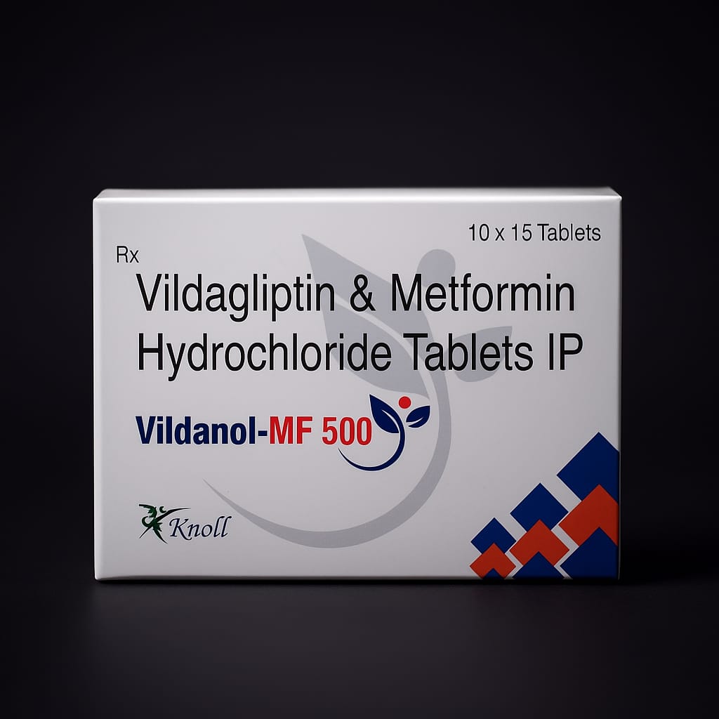 Vildanol MF 500 Tablet is an oral antidiabetic medicine used to control blood sugar levels in patients with Type 2 Diabetes Mellitus. It is a combination of Vildagliptin and Metformin Hydrochloride (500 mg), which work together to improve glycemic control when diet and exercise alone are insufficient.